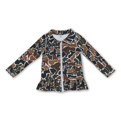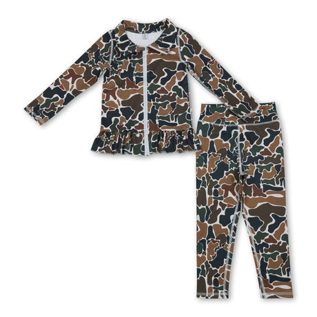 Long sleeves brown camo ruffle top leggings girls yoga set