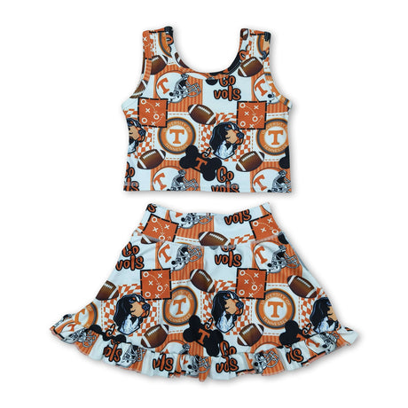 Short sleeves football bow top skirt girls team active wear set