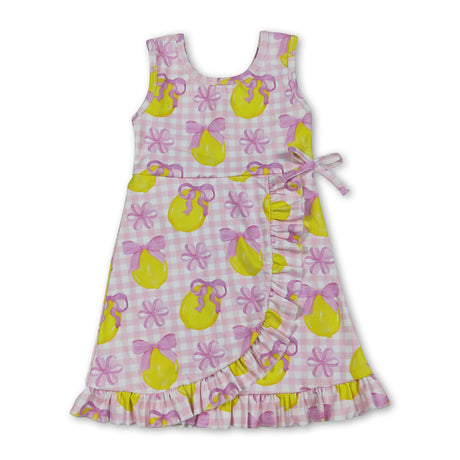 Sleeveless pink plaid bow lemon girls summer athletic dress