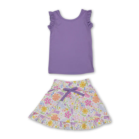 Sleeveless sky blue plaid crop top skirt kids girls active set