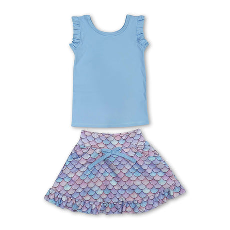 Sleeveless crawfish bow top skirt girls active wear set