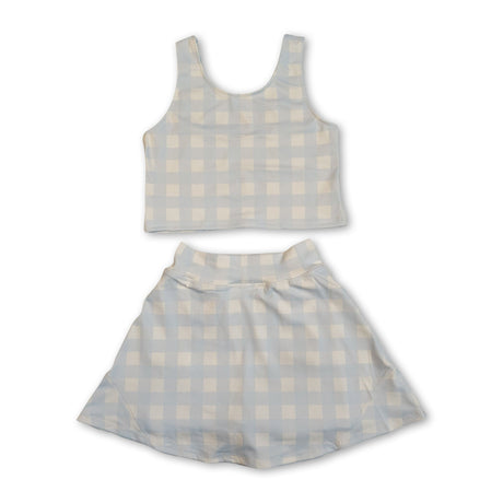 Sleeveless lavender plaid top shorts girls active wear set