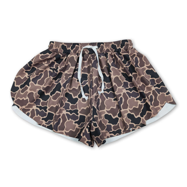 Brown camo adult women summer active shorts