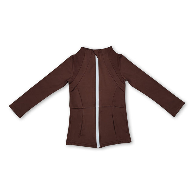 Brown long sleeves zipper pockets baby girls yoga shirt