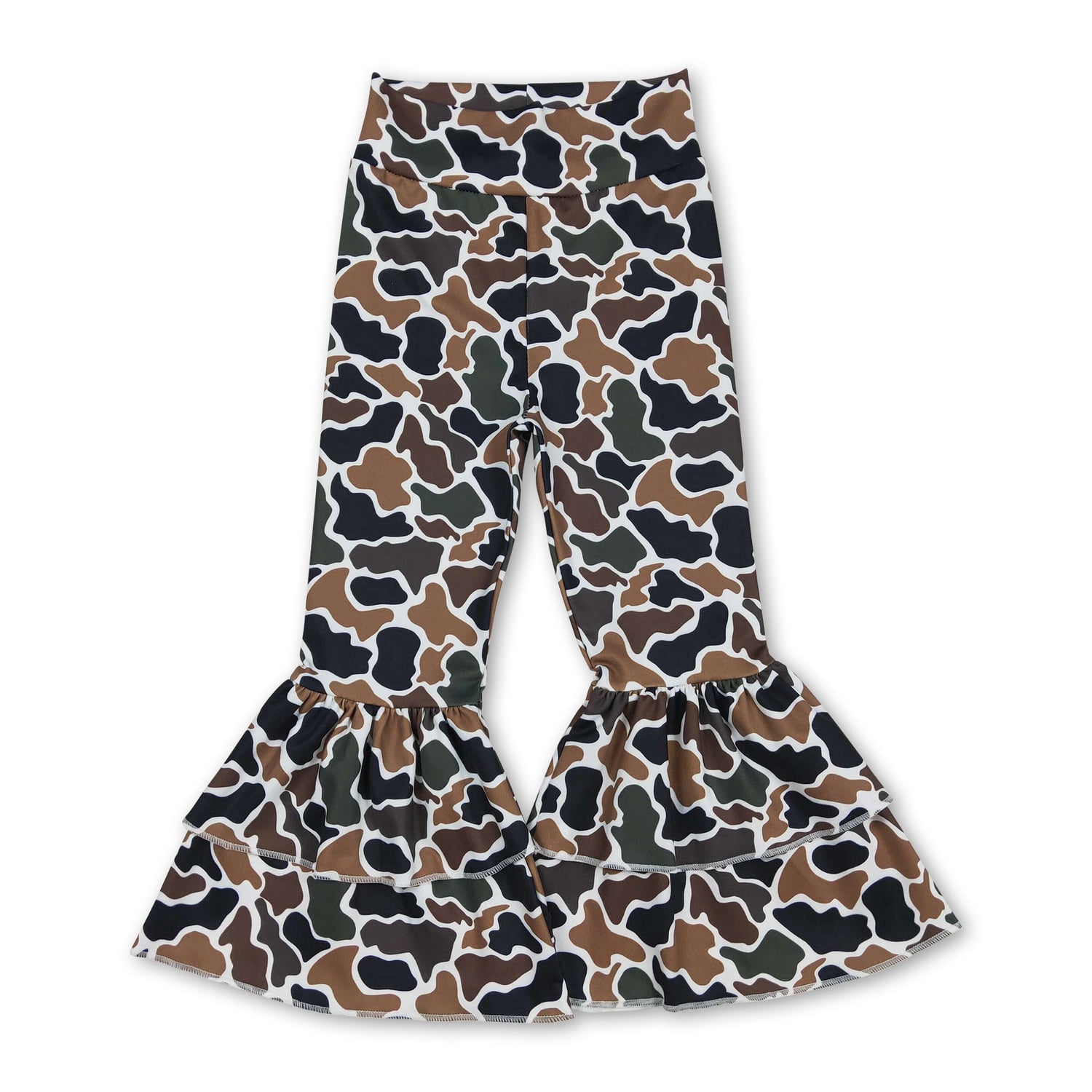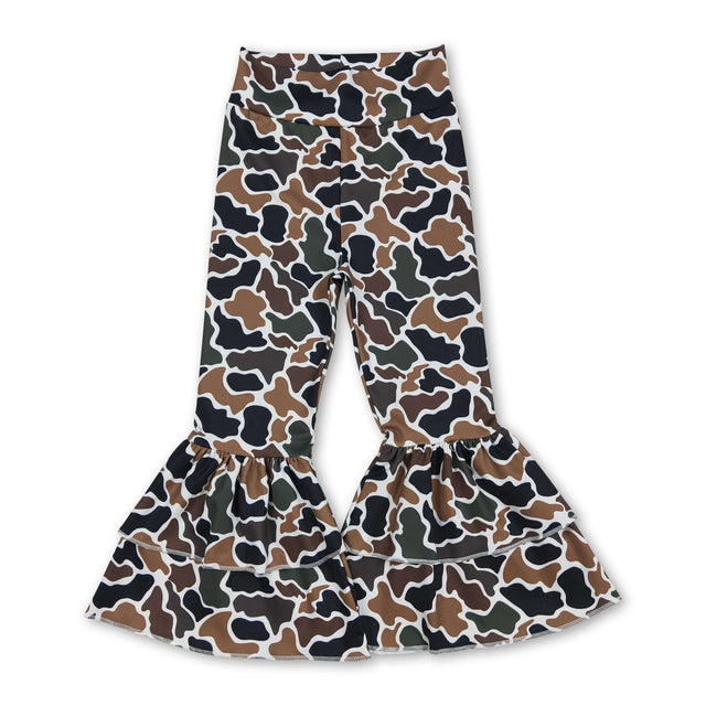 Brown camo kids girls yoga ruffle bell bottom pants