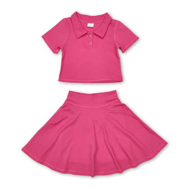Hot pink polo shirt skirt girls active wear set - 3-6M is backordered and will ship as soon as it is back in stock.