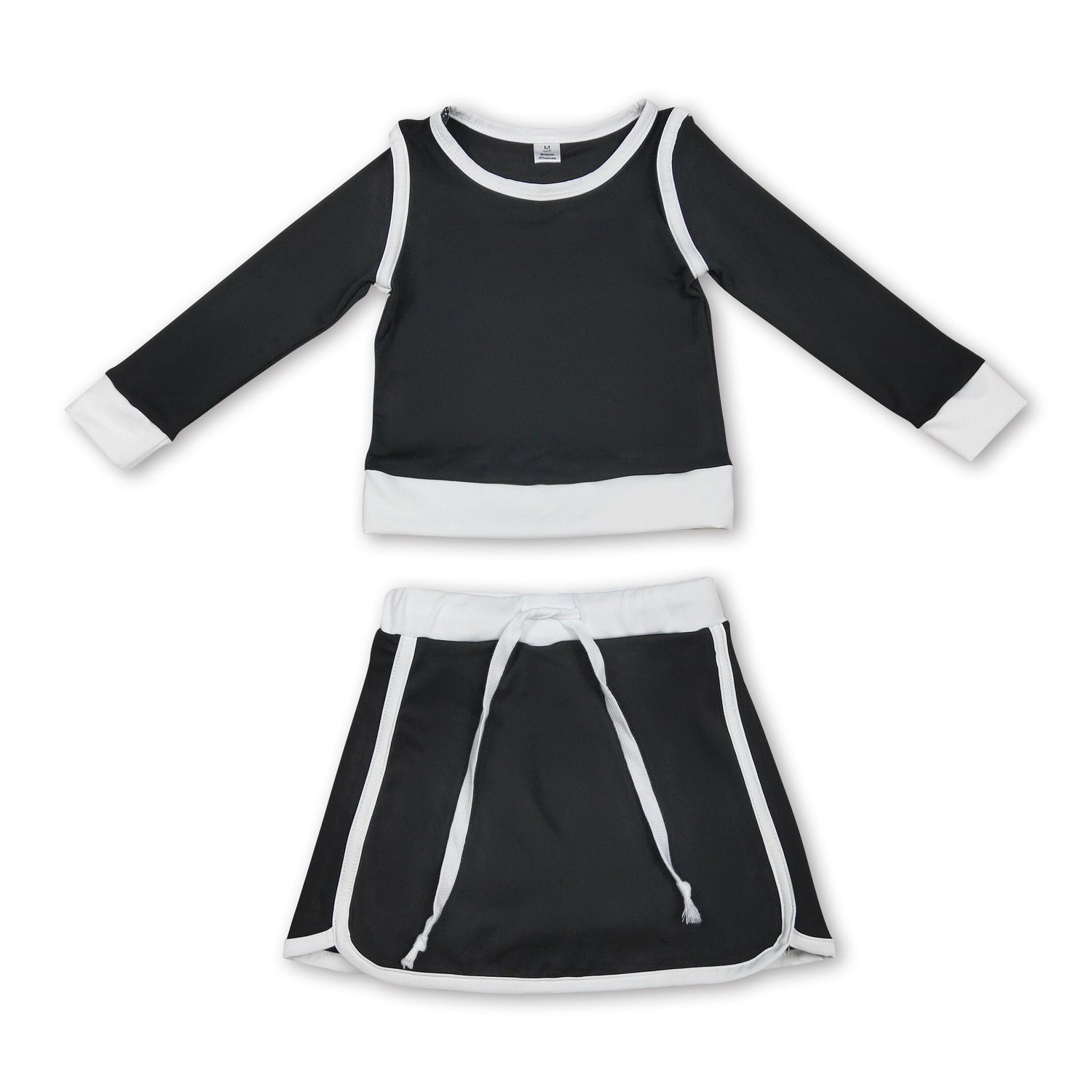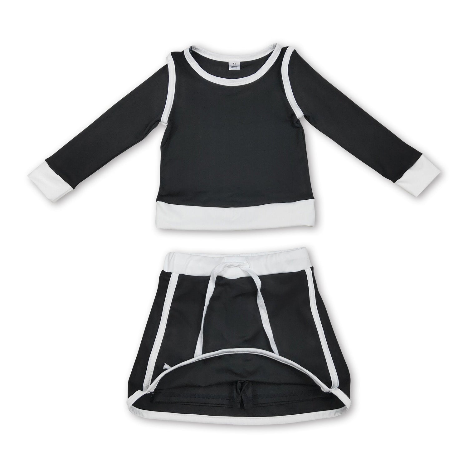 Long sleeves black top skirt kids girls active outfits