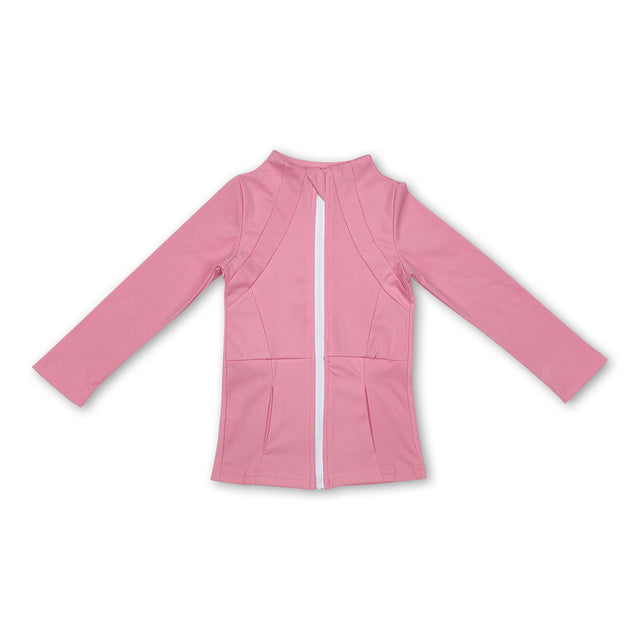 Peach long sleeves zipper pockets baby girls yoga shirt