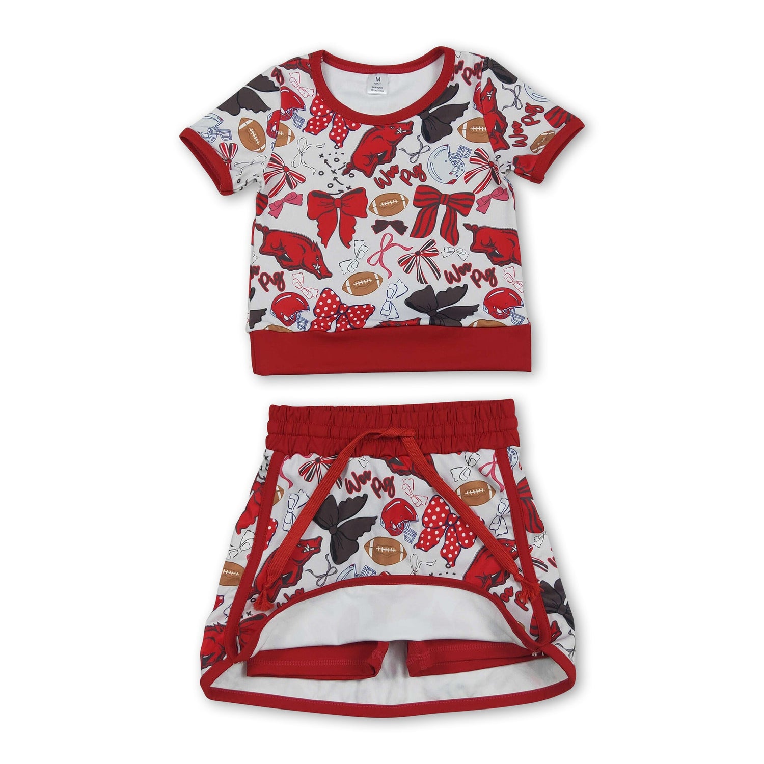 Short sleeves hogs bow top skirt girls team active wear set - 3-6M is backordered and will ship as soon as it is back in stock.
