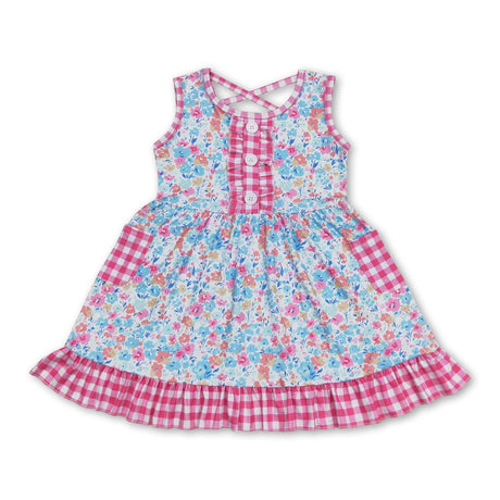 From $1250Unit price /UnavailableSleeveless floral pink plaid bow baby girls summer dress