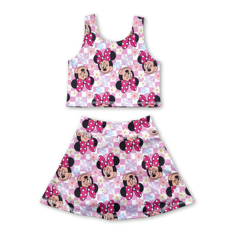 Sleeveless floral mouse top skirt kids girls activewear