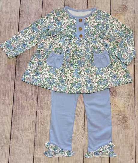$750Unit price /Unavailableblue flowers pocket girl long sleeve set