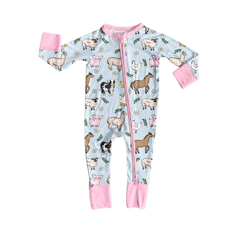 From $850Unit price /UnavailablePink pig chicken cow farm baby girls zipper romper