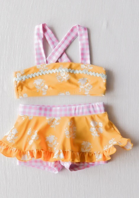 From $1150Unit price /UnavailablePink plaid straps yellow floral girls two pieces swimsuit