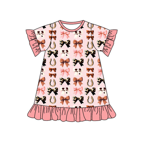 $1150Unit price /UnavailablePink ruffle cow print bow western kids girls dresses