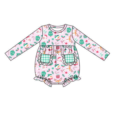 From $1450Unit price /UnavailablePink santa deer snowman pocket baby girls Christmas romper