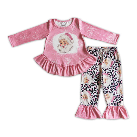 From $1200Unit price /UnavailablePink santa bleached tunic leopard pants baby girls Christmas clothes