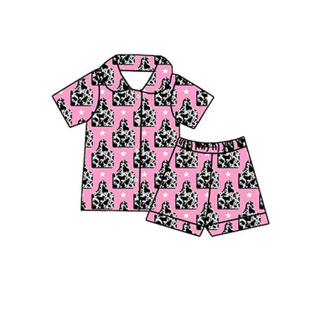 From $950Unit price /UnavailablePink short sleeves cow tag kids girls button down pajamas