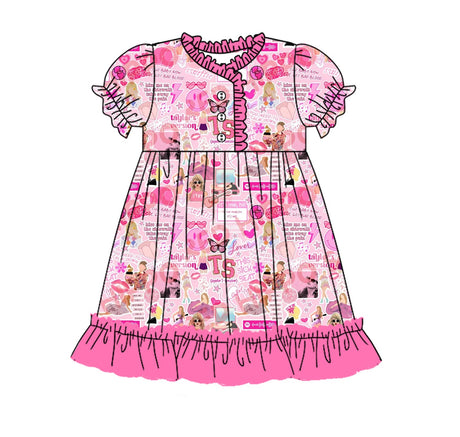 From $650Unit price /UnavailablePink short sleeves ruffle smile heart singer girls dresses