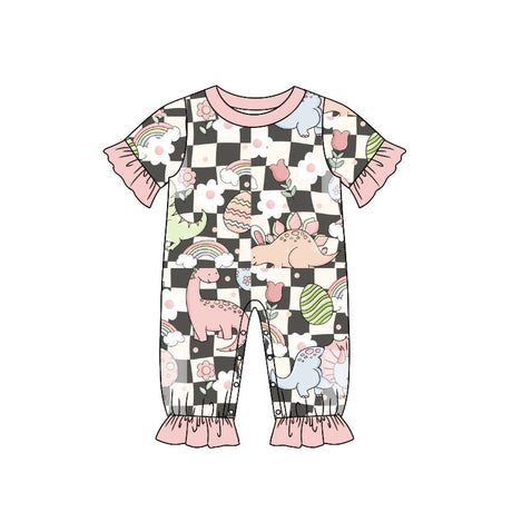 $2150Unit price /UnavailablePink short sleeves plaid dinosaur eggs girls easter romper