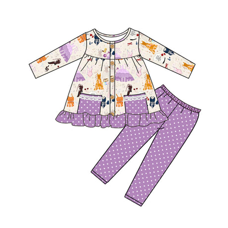 From $1200Unit price /UnavailablePockets ruffle tunic lavender polka dots leggings singer girls set