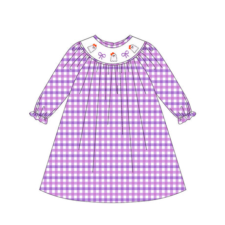 From $1100Unit price /UnavailablePurple plaid ghost bow smocked girls Halloween dress