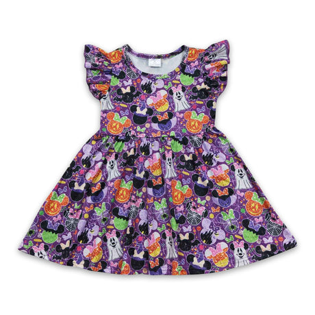 Purple pumpkin ghost mouse kids girls Halloween dress