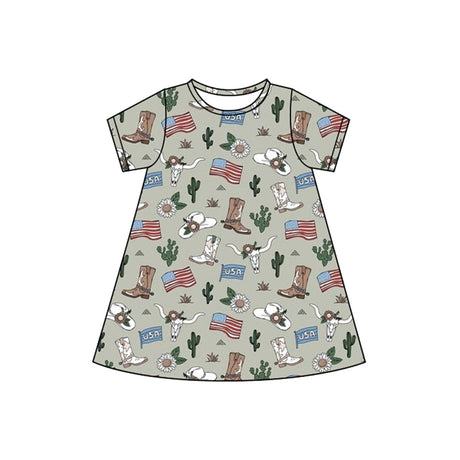 From $1000Unit price /UnavailableShort sleeves bull skull flag western girls 4th of july dress