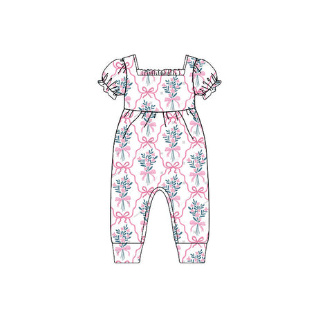 $1250Unit price /UnavailableShort sleeves pink bow floral pockets girls jumpsuit