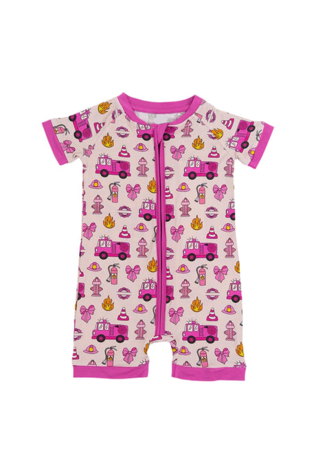 $1000Unit price /UnavailableShort sleeves pink bow fire truck baby girls zip romper