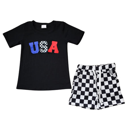 From $1350Unit price /UnavailableShort sleeves USA top plaid shorts boys clothing set