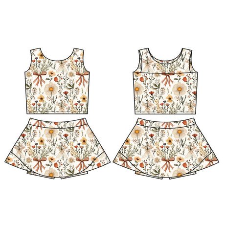 - Sleeveless beige floral bow top skirt girls active wear set From $1500Unit price /Unavailable