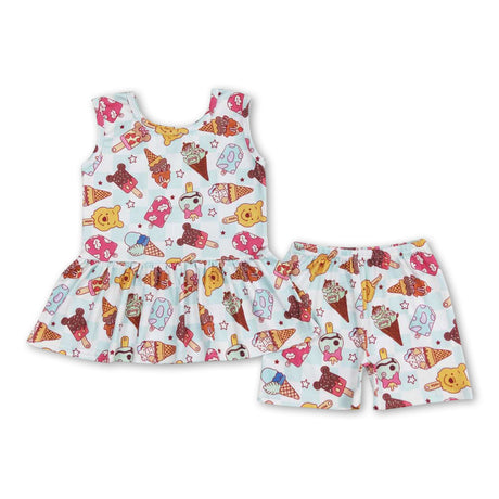 - Sleeveless bear ice cream peplum shorts kids girls clothes From $1250Unit price /Unavailable