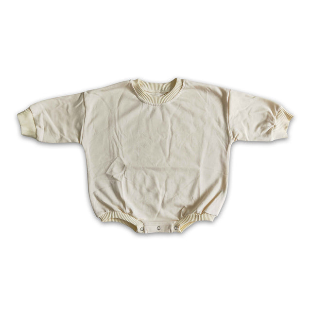 Beige cotton long sleeves baby girls sweater romper - 0-3M is backordered and will ship as soon as it is back in stock.