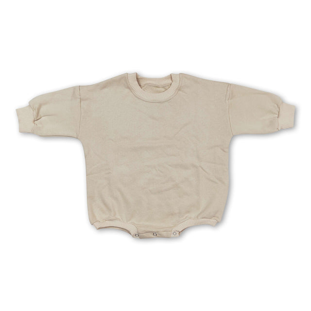 Beige long sleeves cotton baby girls sweat romper - 0-3M is backordered and will ship as soon as it is back in stock.