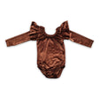 Brown velvet long sleeves romper baby girls leotard - 0-3M is backordered and will ship as soon as it is back in stock.