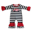 Cow truck embroidery stripe baby girls romper