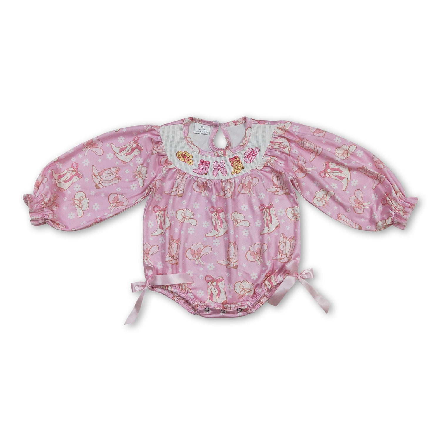 Long sleeves boots hat bow western baby girls romper - 0-3M is backordered and will ship as soon as it is back in stock.