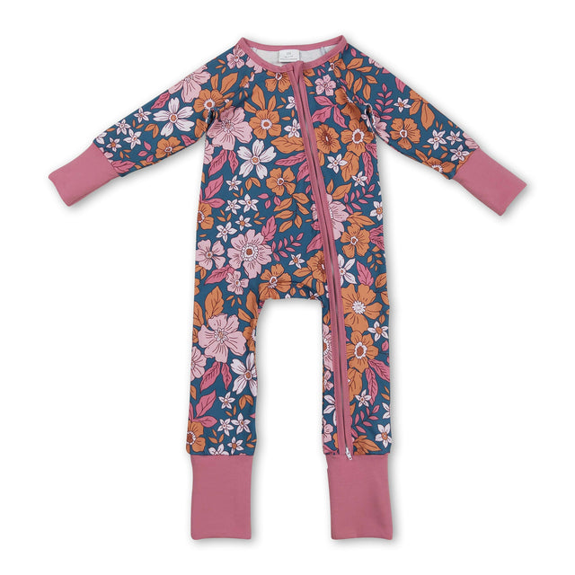 Long sleeves floral baby girls zipper fall romper