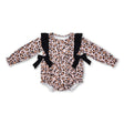 Long sleeves leopard bow baby girls fall romper - 0-3M is backordered and will ship as soon as it is back in stock.