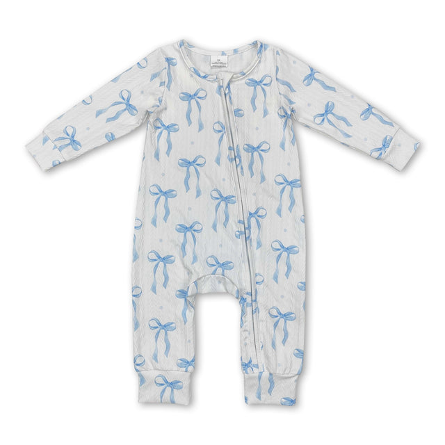 Long sleeves light blue bow cable knit baby girl zipper romper