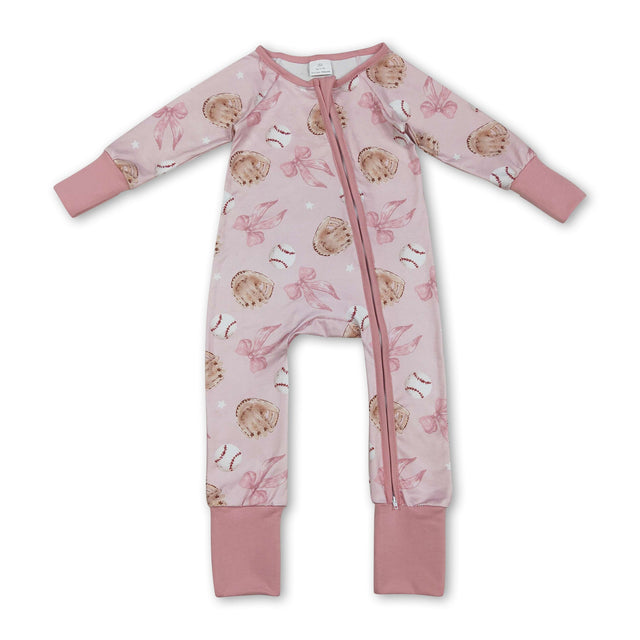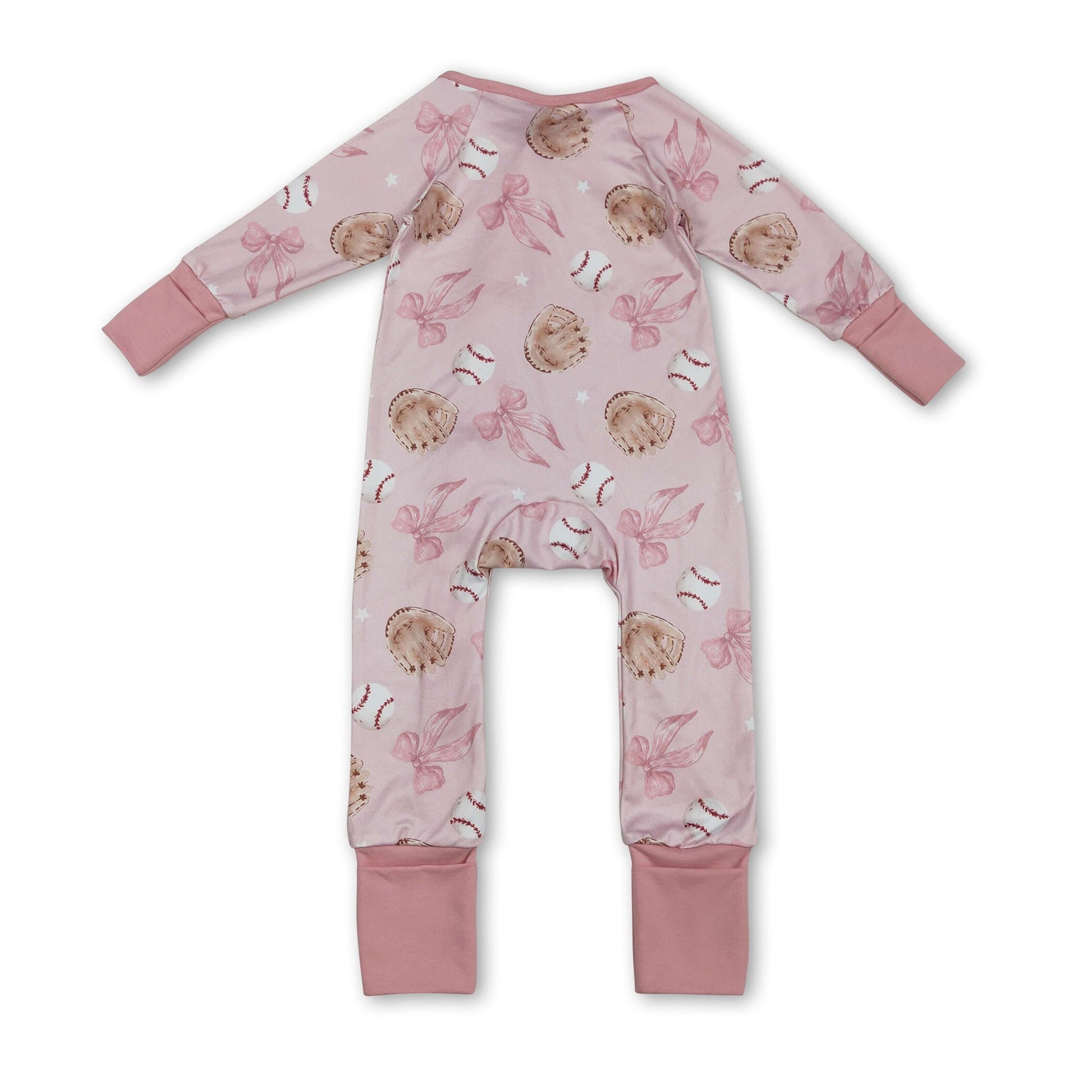 Long sleeves pink bow baseball baby girls zipper romper - 0-3M is backordered and will ship as soon as it is back in stock.