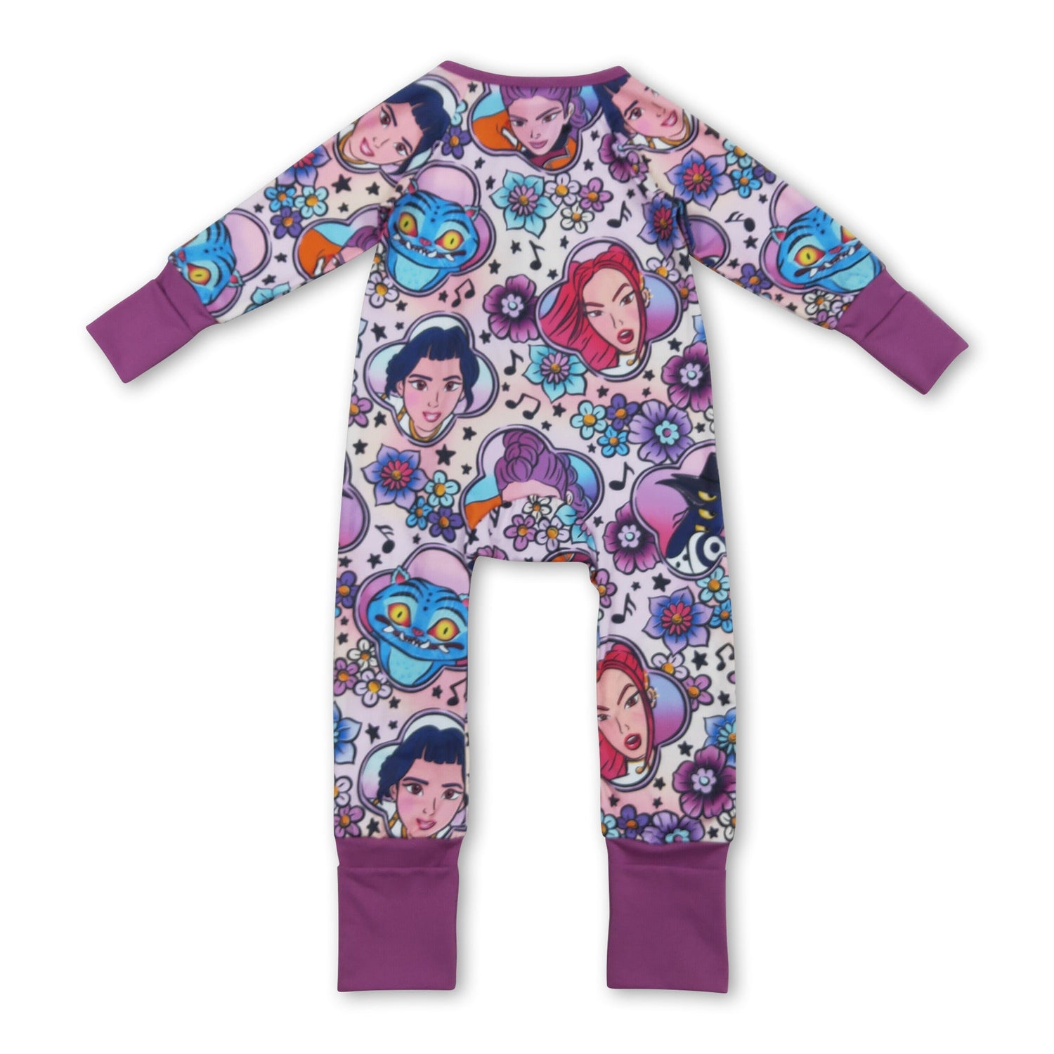 long sleeves purple cartoon baby romper - 0-3M is backordered and will ship as soon as it is back in stock.