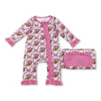 Pink ruffle long sleeves football bow baby girls zipper romper