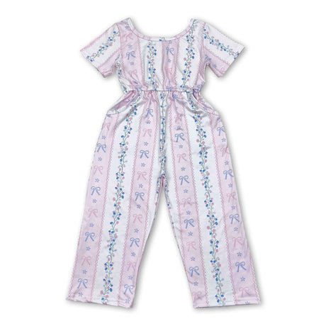 $1100Unit price /UnavailableShort sleeves pink bow floral pockets girls jumpsuit