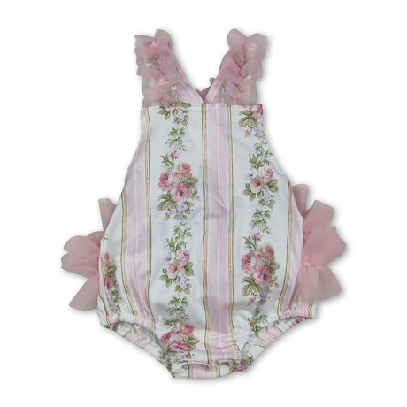 Pink tulle ruffle floral straps baby girls summer romper