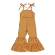 Mustard straps patchwork ruffle kids girls jumpsuit