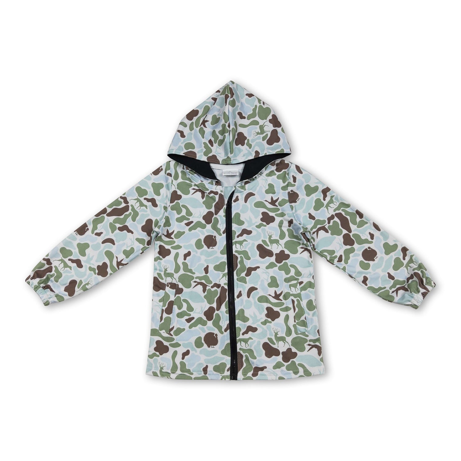 Green camo deer duck hunting boys zipper hooded jacket