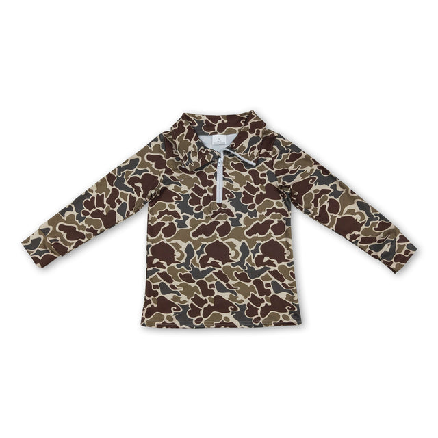 Long sleeves dark brown camo kids boys zipper pullover