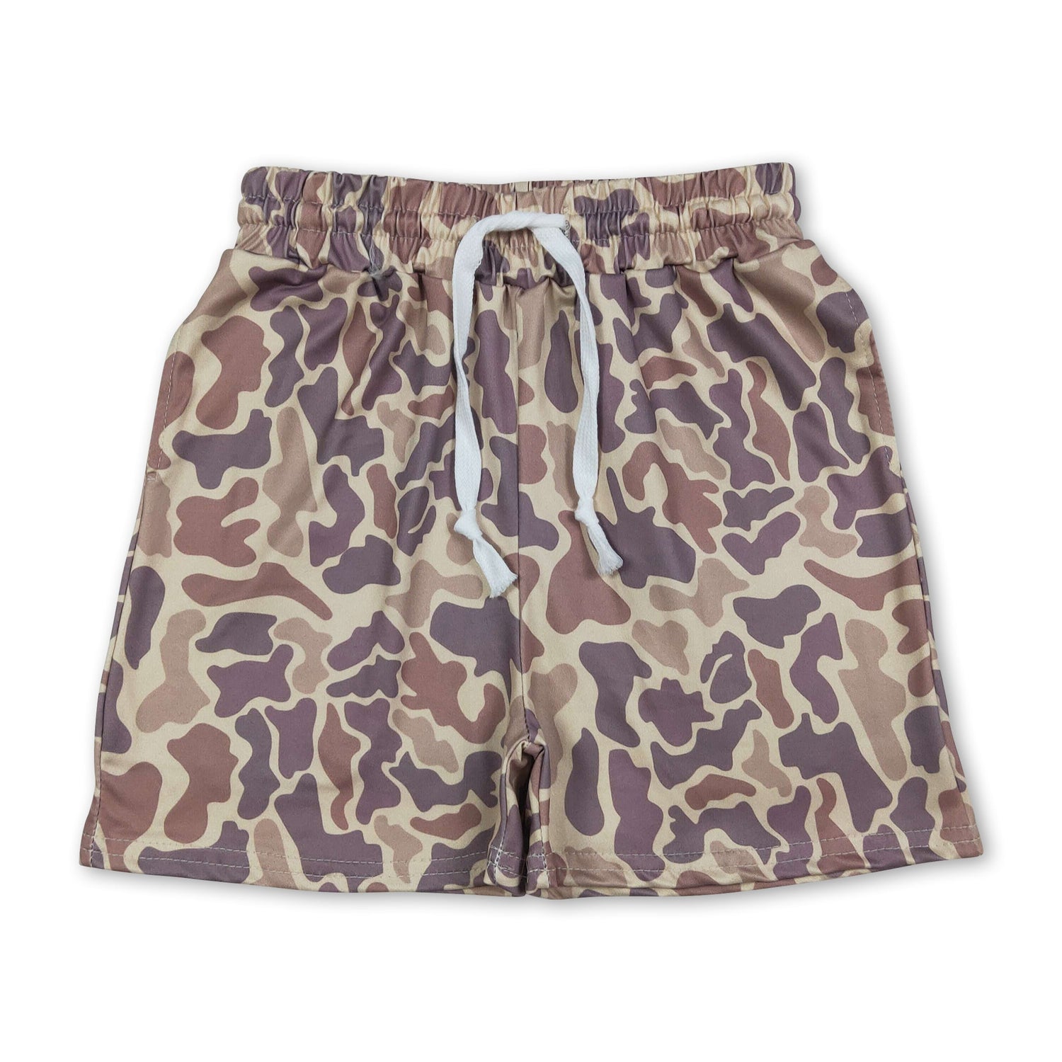Khaki camo pockets elastic kids boys summer shorts